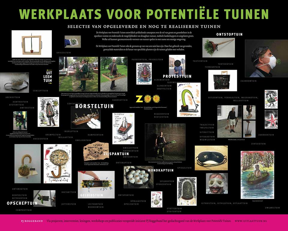 Geregeld gaat de vierkante metertuin naar buiten, de natuur in, om de schouders van de mens. De uitgelaten tuin.
